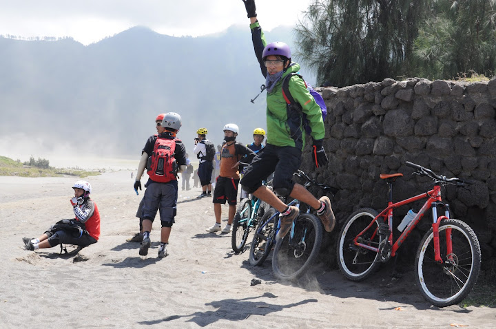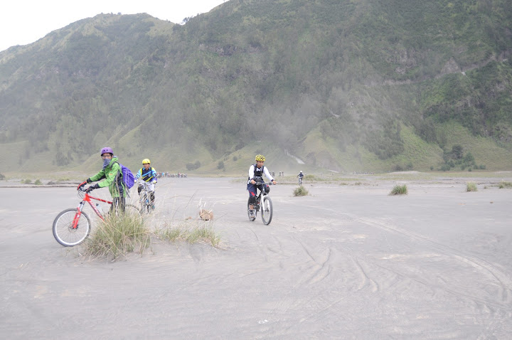 Awal mei kemarin, ternyata rute ramai2 disepakati menuju Bromo lautan pasir. Dgn beberapa rider yg lumayan gaek,loading diberangkatkan dari plaza elektronik. Jam 6 pagi dgn perjalanan sampai penanjakan jam 9. Bersiap2 kemudian dari penanjakan gowes turun ke lautan pasir. Kemiringan yg sangat edan hingga membakar salah satu rotor rem milik rekan kami,krn dipaksa kerja keras menghadapi turunan setan.